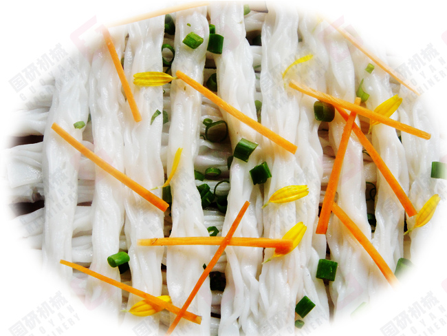 廣東拉腸粉具有白如雪、薄如紙、油光閃亮、香滑可口等特點(diǎn)。又因方便快捷,拿起即食的優(yōu)點(diǎn),廣受早餐時(shí)間匆忙的上班族喜愛。而傳統(tǒng)純靠蒸盤一張一張蒸片刮成型,生產(chǎn)效率低,勞動強(qiáng)度大,無法量產(chǎn),從而錯(cuò)過銷售了高峰期的客流量。廣州國研機(jī)械正是看準(zhǔn)了此商機(jī),早在二十年前便已經(jīng)在河粉的基礎(chǔ)上增加了自動的拉腸粉成型機(jī),讓商家除了可生產(chǎn)拉腸粉外,有多余的時(shí)間還可生產(chǎn)河粉,涼皮等產(chǎn)品,一機(jī)多用,讓銷售市場更多元化,獲得更多的利潤。