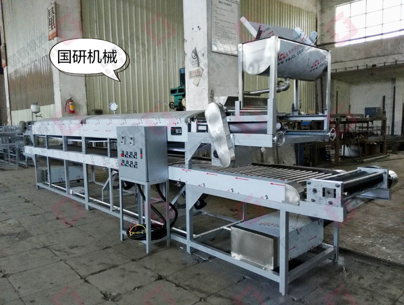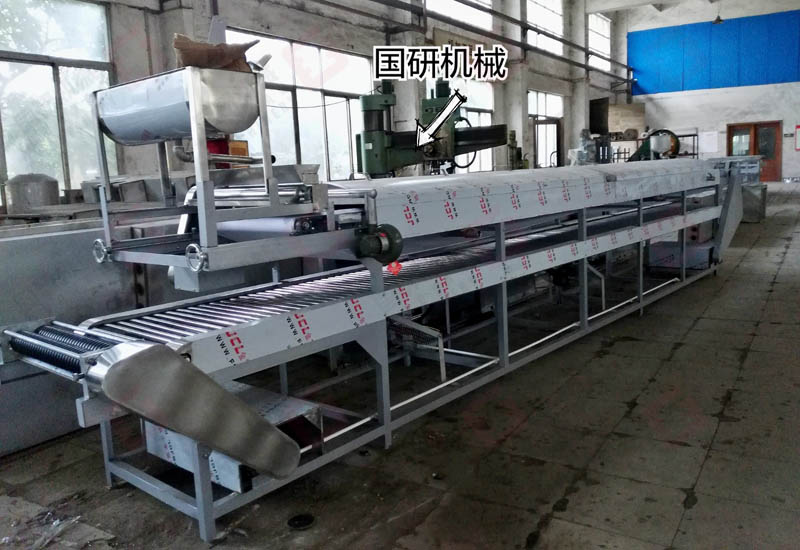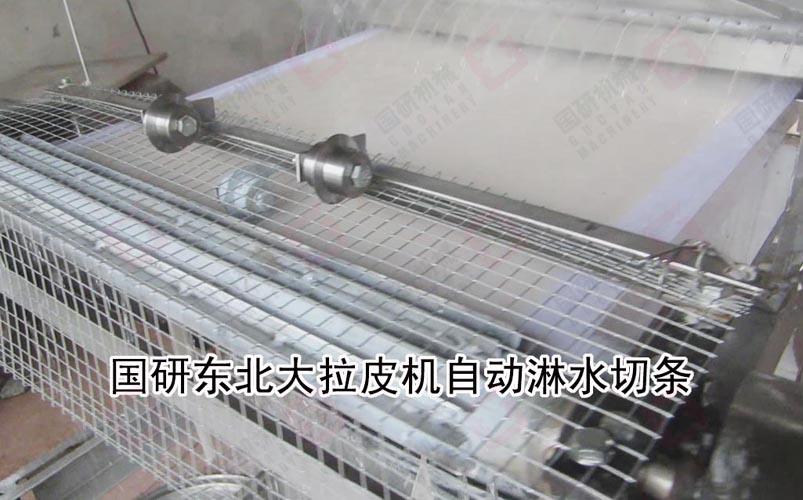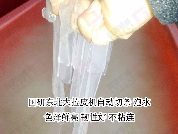 國研牌東北大拉皮機(jī)(粉皮機(jī))采用自動(dòng)下漿、蒸汽蒸熟,自動(dòng)淋水分離 ,自動(dòng)切條、切片(根據(jù)客戶的需要訂制)。生產(chǎn)過程可不需要專人操作,自動(dòng)化生產(chǎn)。生產(chǎn)的拉皮晶瑩剔透,韌性強(qiáng),口感好,生產(chǎn)效率高。每公斤淀粉可生產(chǎn)拉皮4.5-5.5公斤,該系列產(chǎn)品有多個(gè)規(guī)格,適合不同投資規(guī)模的客戶需求,辦食品加工廠,餐飲連鎖店,單位或?qū)W校食堂適用。