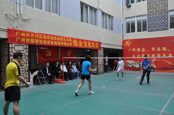 天河區(qū)國稅局紀(jì)檢組長黃捷洪、九分局葉潔麗局長、我司黨支部書記、副總經(jīng)理王聲躍等領(lǐng)導(dǎo),及稅企雙方共三十多人參加了此次活動(dòng)?;顒?dòng)內(nèi)容包括重溫入黨誓詞、乒乓球和羽毛球友誼賽等。自今年三月“稅企文化共建”活動(dòng)開展以來,我司和區(qū)國稅局以文化共建為平臺(tái),舉行了一系列互動(dòng)活動(dòng),形成了以共建促和諧,以共建促發(fā)展,以共建促共贏的良好局面。