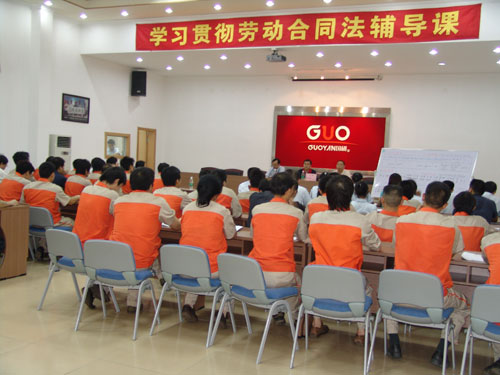 5月9日下午,廣州市國硯實業(yè)發(fā)展有限公司、廣州市國研機械設(shè)備制造有限公司在總部大會議廳舉行了聲勢浩大的學(xué)習(xí)《勞動合同法》活動。該活動由公司黨支部書記、副總經(jīng)理王聲躍主持,廣東注明律師事務(wù)所——廣東德法理律師事務(wù)所、我司常年法律顧問黃文芳主任律師擔(dān)任主講。