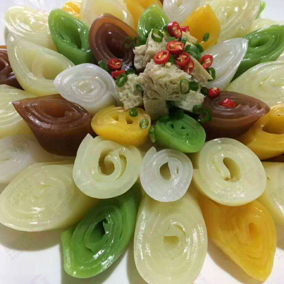 在經(jīng)濟(jì)高速發(fā)展和食品越來(lái)越多元化的今天,涼皮機(jī)如果只能生產(chǎn)涼皮一種產(chǎn)品將難以在市場(chǎng)上立足。國(guó)研多功能河粉機(jī)可根據(jù)不同的配置(例如可加裝拉腸粉機(jī)頭、卷粉機(jī)頭、自動(dòng)切片,自動(dòng)切條等多種方式)和原料出產(chǎn)不同樣式的產(chǎn)品,可直接倒入面粉打槳就可生產(chǎn)出面皮,釀皮;面粉經(jīng)過(guò)洗面后可生產(chǎn)出涼皮和面筋;大米磨槳?jiǎng)t可生產(chǎn)河粉、潮汕粿條、江西燙皮、貴州卷筒粉、云南切粉、漢中米皮、綦江米粉、筷子粉等;除此之外還能生產(chǎn)以玉米、紅薯、綠豆等淀粉類(lèi)粉皮、扁粉、拉皮等等產(chǎn)品。國(guó)研多功能河粉機(jī)真正實(shí)現(xiàn)一機(jī)多用,適合不同客戶(hù)需求,銷(xiāo)售市場(chǎng)更廣闊!