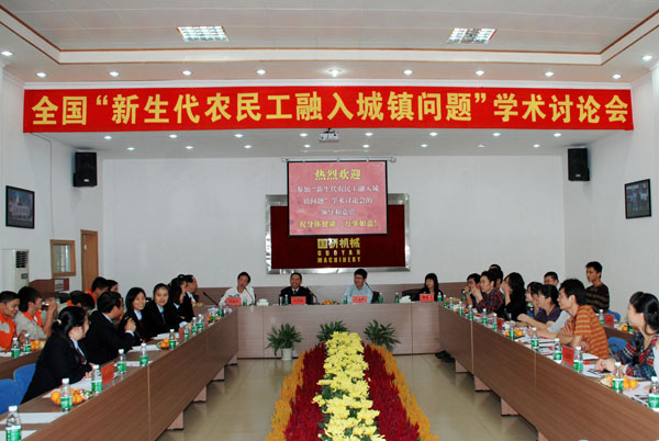 11月8日上午,由廣州市社會科學屆聯(lián)合會、廣州大學廣州發(fā)展研究院、廣州大學人權(quán)研究中心主辦的全國新生代農(nóng)民工融入城鎮(zhèn)問題學術(shù)研討會在廣州市國研機械設(shè)備制造有限公司隆重召開。中國社科院及全國多所知名高等院校專家、學者齊聚一堂,就新生代農(nóng)民工融入城鎮(zhèn)問題與我司員工代表暢所欲言、各抒己見,展開了熱烈的討論。