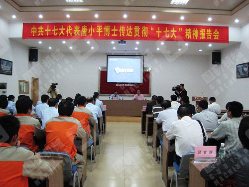 11月14日下午,陽光燦爛,秋風(fēng)送爽,在喜慶的鑼鼓和歡聲笑語中,座落于廣州市天河區(qū)珠吉街的廣州市國研機械設(shè)備制造有限公司迎來了黨的十七大代表唐小平博士。唐小平代表面對國研公司黨支部全體黨員和公司全體員工,作了一場豐富詳實、精彩生動的報告。珠吉街黨工委、辦事處領(lǐng)導(dǎo)班子成員、街屬各支部書記、以及天河區(qū)委組織部、區(qū)委宣傳部的有關(guān)負(fù)責(zé)同志應(yīng)邀出席了報告會。
