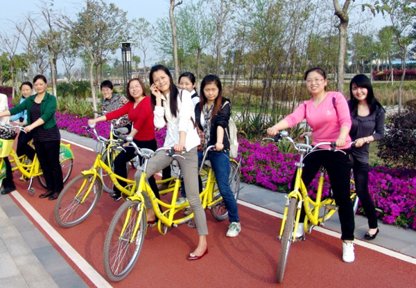 頭頂藍(lán)天白云,腳踏茵茵綠草,身邊是碧水長(zhǎng)堤,目之所及,綠樹紅花交相輝映。并時(shí)有白墻黑瓦、古色古香的亭臺(tái)樓閣,鋪上琉璃瓦的尖頂,迂回幽靜的廊中榭間,處處彰顯著嶺南水鄉(xiāng)的韻味。女同事們?cè)陉?yáng)光下歡呼雀躍,笑聲被三月的春風(fēng)送得很遠(yuǎn)。各色鮮花帶來的驚喜,比賽騎車的刺激,采摘楊桃時(shí)的興奮,聚餐給人的溫馨感覺,讓她們感覺到了全身心的放松和快樂。多位女同事不禁感嘆:“和姐妹們聚在一起的感覺實(shí)在太棒了!公司真給力呀!”